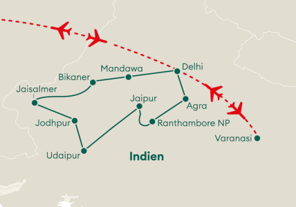 Heute verlassen Sie die Hauptstadt Indiens in Richtung Nordosten Rajasthans zur Stadt der Havelis. In der kleinen Stadt Mandawa, mit 20'000 Einwohnern, besuchen Sie am Nachmittag die prachtvoll bemalte Havelis, so nannte man die alten Handelspaläste für die Karawanen.
